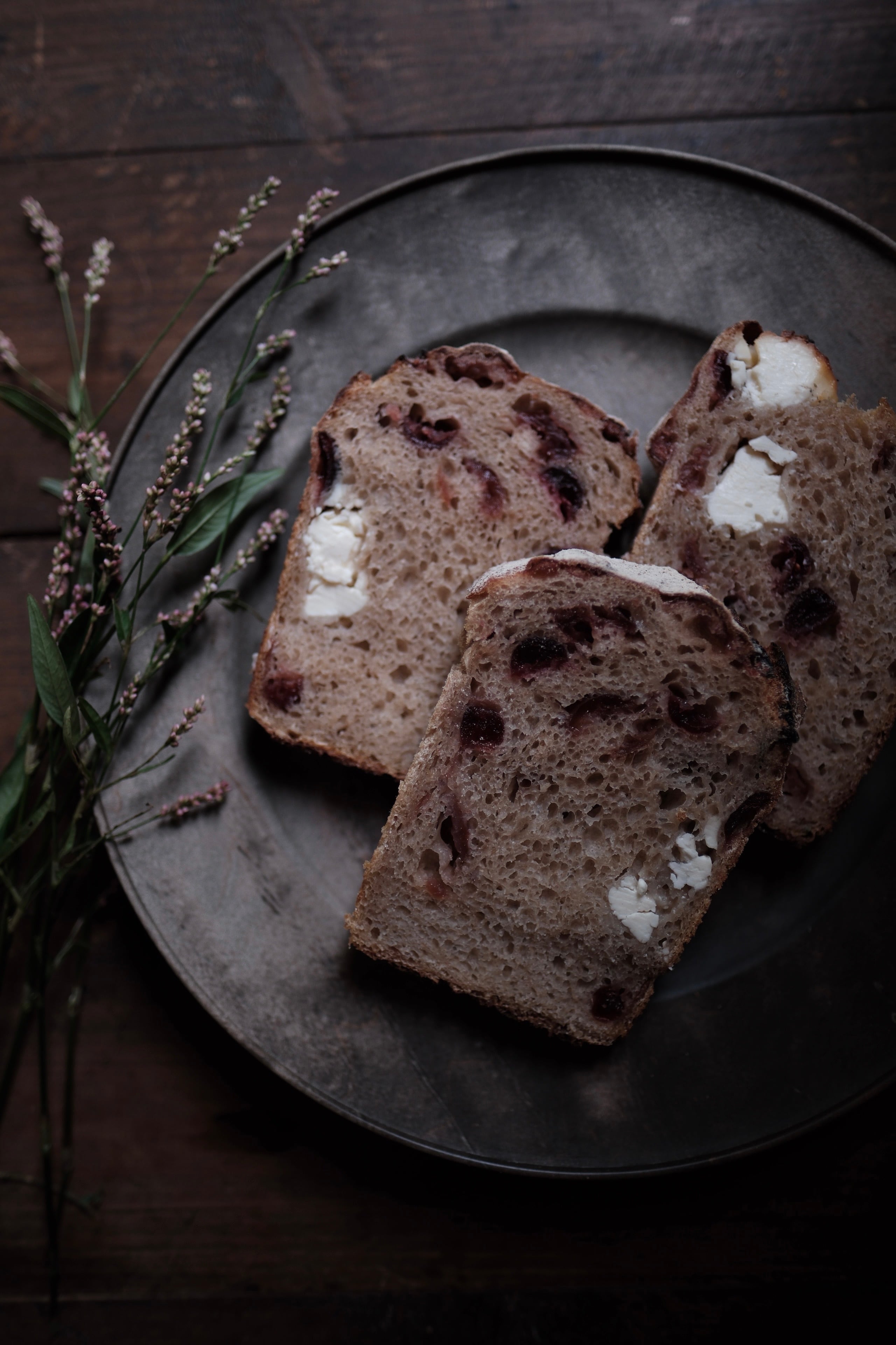 北海道産石臼挽き有機小麦、九州産石臼挽き有機小麦、天日塩、発酵種(北海道産有機小麦使用)、クランベリー(アメリカ産)、クリームチーズ(北海道産)
